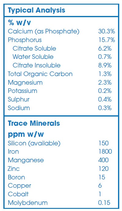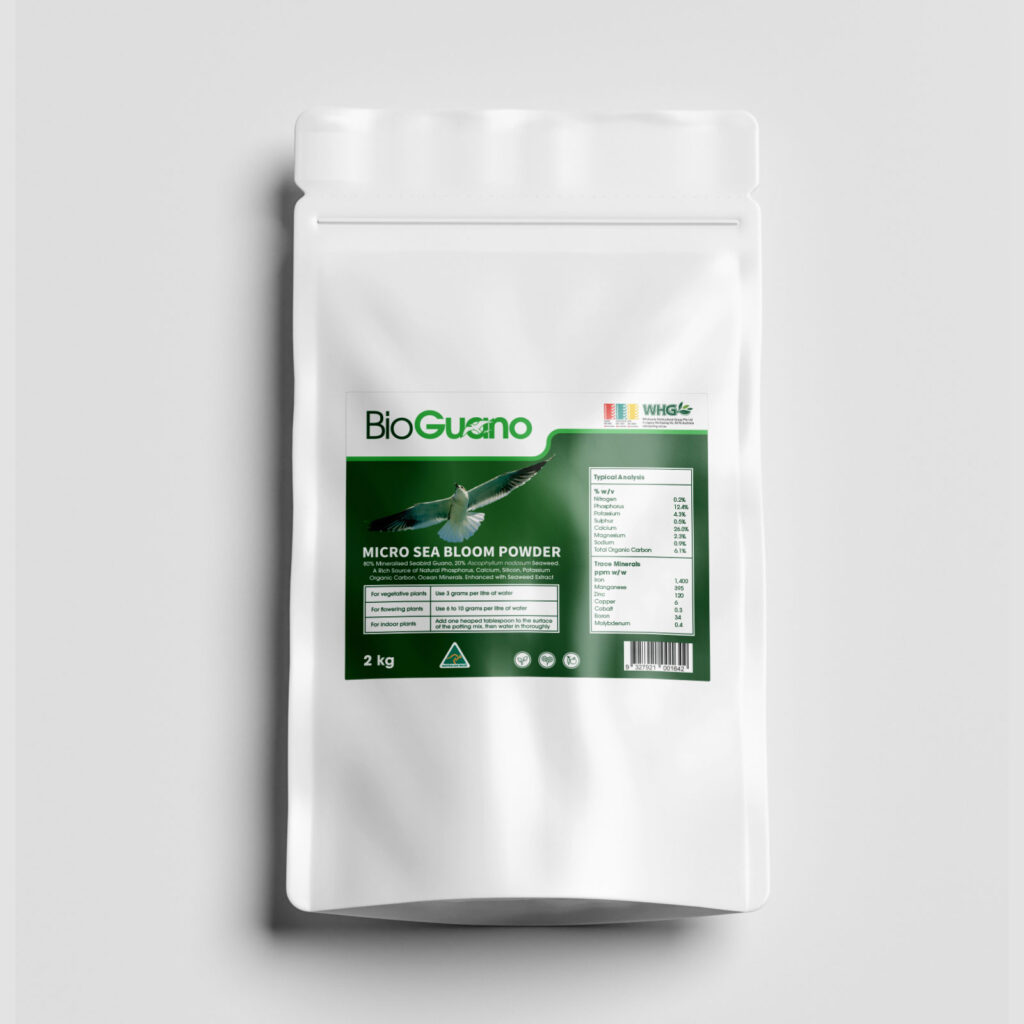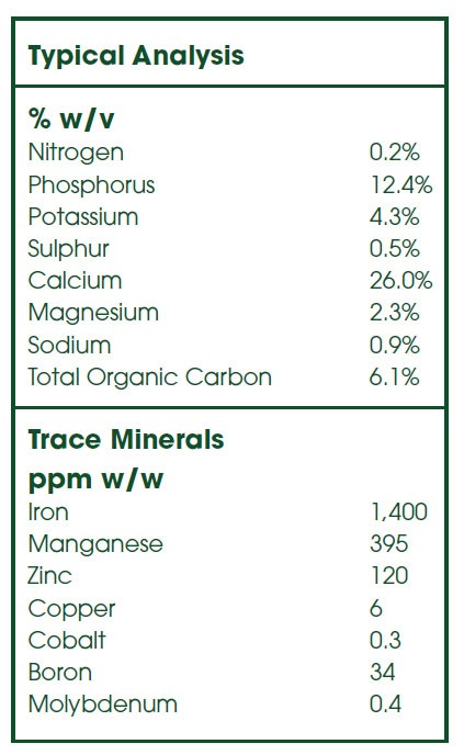 80% Mineralised Seabird Guano, 20% Ascophyllum nodosum Seaweed. A Rich Source of Natural Phosphorus, Calcium, Silicon, Potassium, Organic Carbon, Ocean Minerals. Enhanced with Seaweed Extract